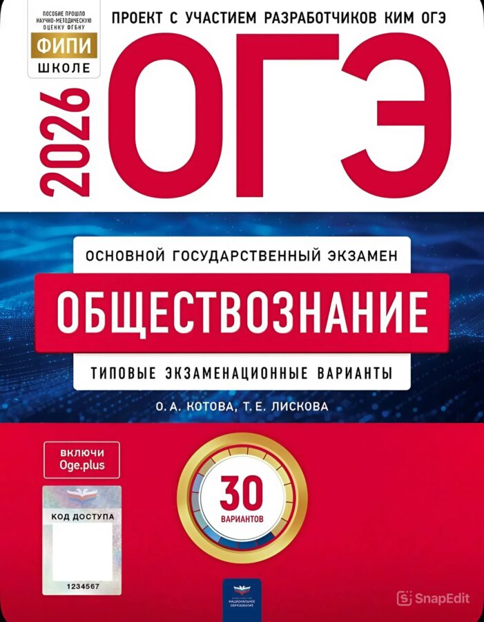30 типовых экзаменационных вариантов, составленных в соответствии с проектом демоверсии КИМ ОГЭ по обществознанию 2026 года;